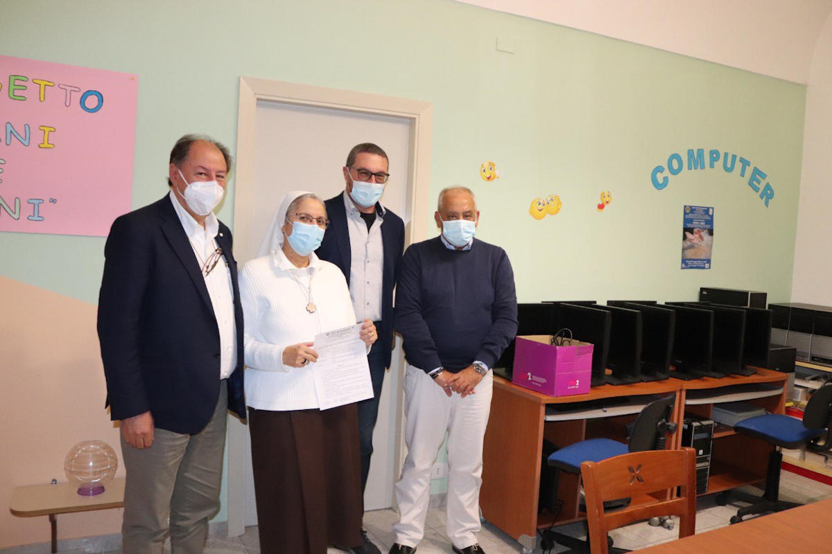 Era stata infatti proprio Suor Emma, lo scorso febbraio a segnalare la carenza di attrezzature informatiche e la difficoltà a reperire fondi per il relativo acquisto.La consegna dei dispositivi è avvenuta presso il convento del quartiere Dente di Modica, dove assieme al Dirigente Balistrieri e all’assessore Linguanti (delegato dal Sindaco) erano presenti due rappresentanti dell’Istituto “Archimede”, il Prof. Giorgio Rizza, responsabile delle Relazioni esterne e il Prof. Francesco Raffa membro del Comitato stampa e immagine. “Voglio ringraziare – commenta l’Assessore Linguanti – il Dirigente dell’”Archimede” e il DSGA, Giovanni Chiaramonte con tutto il personale dell’Istituto che, come sempre hanno reso possibile il successo di un’iniziativa solidale che ha permesso ancora una volta all’Istituto “Archimede”, di testimoniare, con un piccolo gesto, il proprio senso di appartenenza ad una città e ad un territorio a cui è legato da più di 150 anni di storia”.