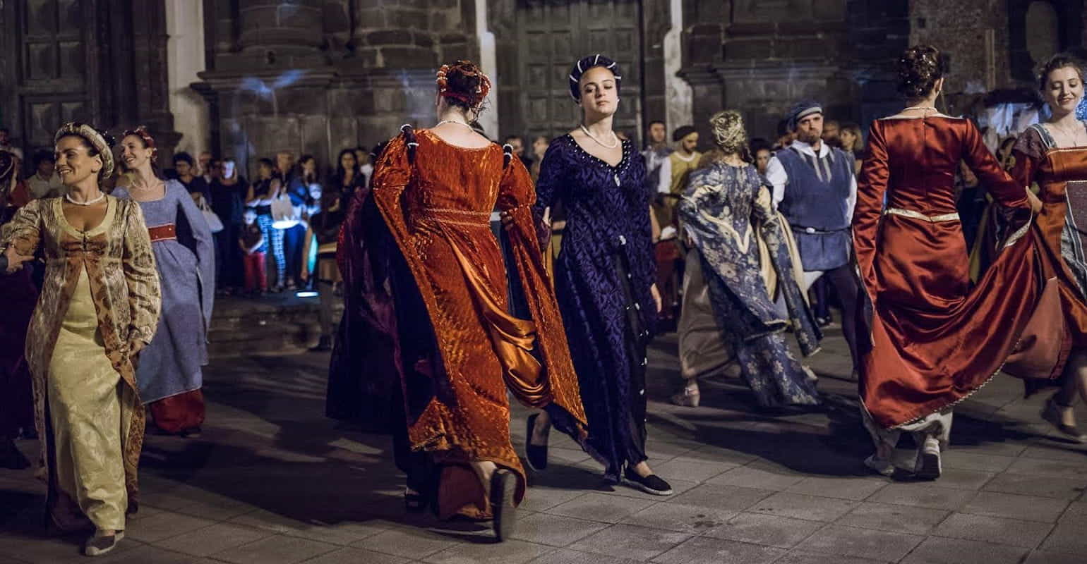 L’ambiente viene intriso di fascino, attraverso scenografie, tradizioni, leggende ed usanze di un periodo storico lontano che torna a fare capolino per una sera. L’atmosfera medievale rivive anche attraverso i mercatini di artigianato, le esibizioni dei gruppi, le degustazioni gastronomiche che fanno assaporare la bellezza di antichi riti e sapori. Ci sarà anche una sfilata per le vie principali del paese”.