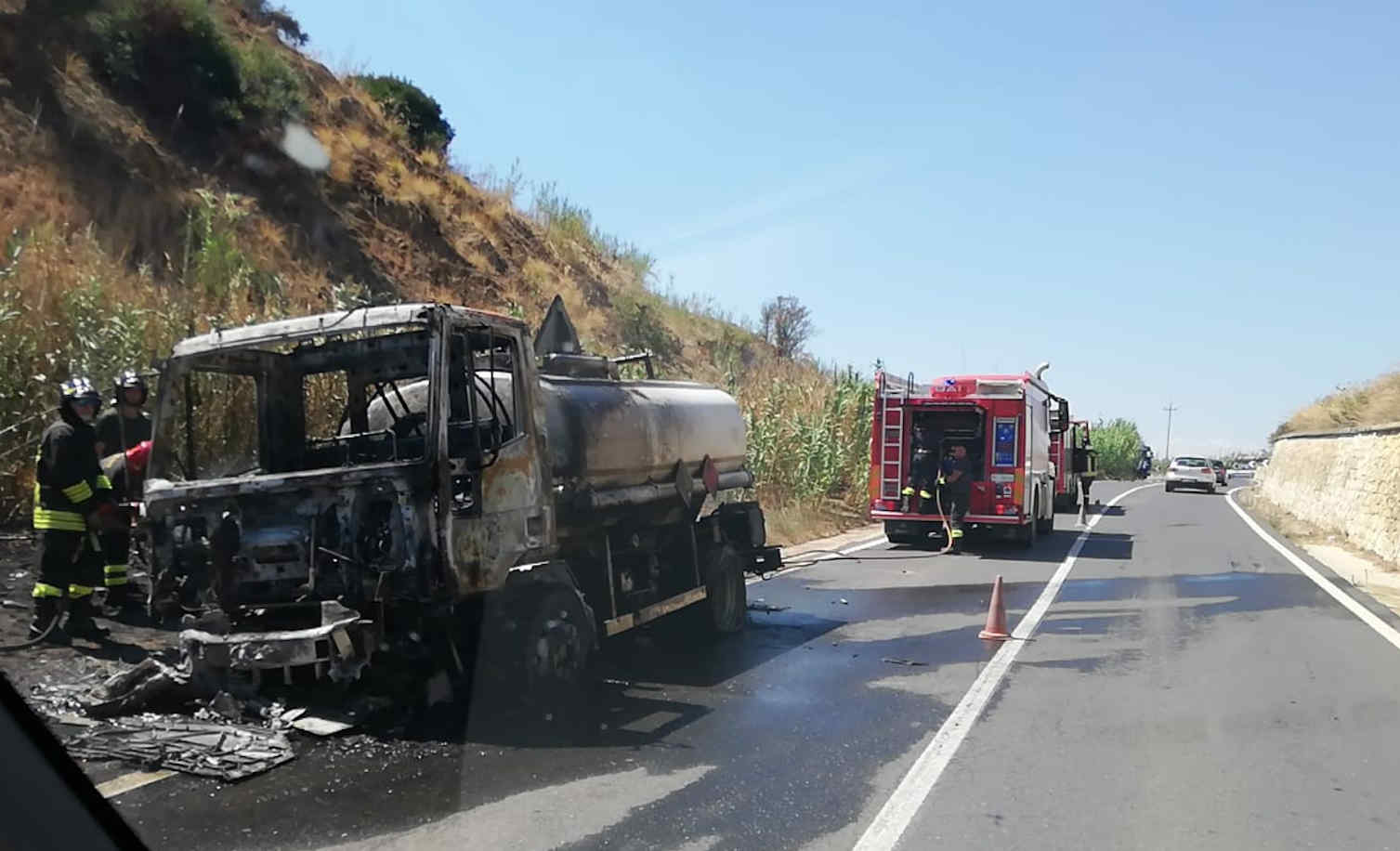 Vittoria – Un tratto della SS 115 e precisamente sulla Vittoria in direzione Gela è chiusa al traffico per l’incendio di un autocarro. Sul posto diverse squadre dei vigili del fuoco. Ancora ignota la cause dell’incendio del mezzo. Sul posto anche la Polizia Stradale. (Foto Assenza)
