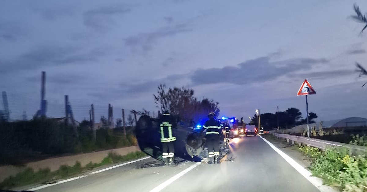 Sul posto sono intervenuti i vigili del fuoco per la messa in sicurezza del veicolo ribaltato.