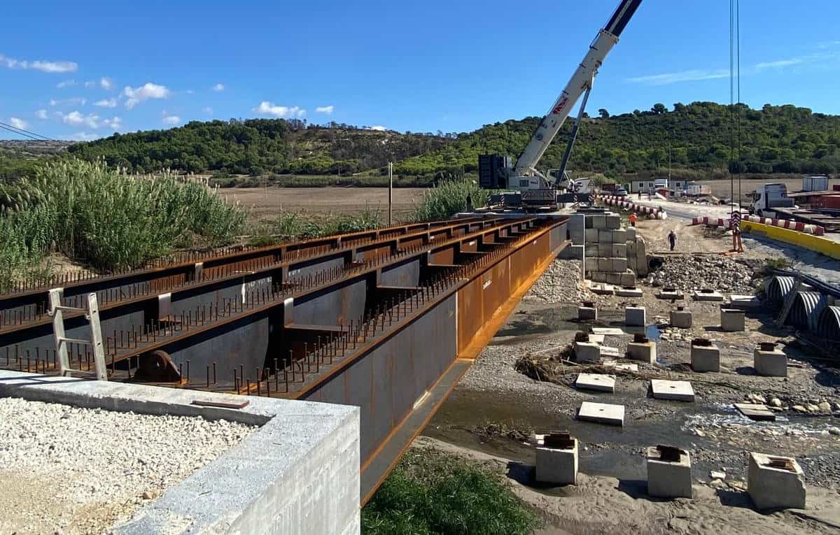 Ragusa – Importante avanzamento per i lavori di messa in sicurezza del ponte lungo la SP 18 Vittoria–Piombo. Nei giorni scorsi è stata completata la posa in opera della nuova struttura metallica, collocata sulle spalle del ponte grazie all’azione combinata di due gru da 400 tonnellate. Un’operazione tecnica complessa e strategica, che segna il superamento di uno degli snodi più delicati dell’intervento.