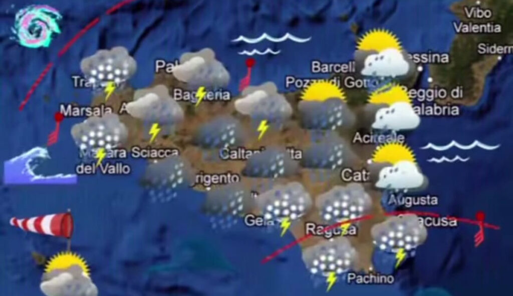 Come anticipato dalle previsioni di Marco Gelfo de Il Mio Meteo Sicilia (vedi foto), la causa è duplice: una depressione che si muove da ovest del Mediterraneo verso est e la contemporanea discesa di aria fredda proveniente da latitudini nordeuropee. Questa combinazione favorirà un marcato peggioramento delle condizioni su tutta l’Isola.