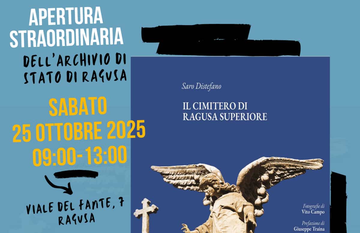 Ragusa – Ritornano le iniziative del Ministero della Cultura, a cura dell’Archivio di Stato di Ragusa. In occasione delle Aperture Straordinarie 2025, la Direzione dell’Archivio di Stato di Ragusa organizza la presentazione del libro “Il cimitero di Ragusa Superiore” di Saro Distefano.