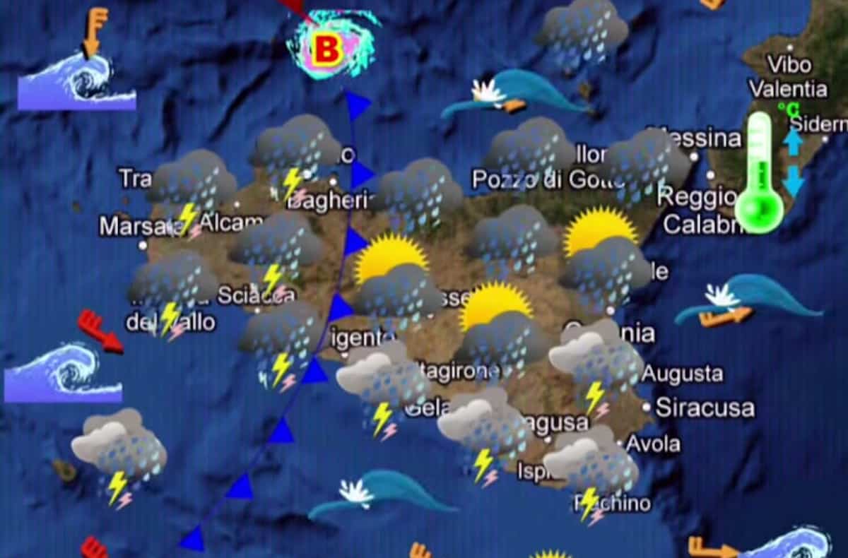 Il transito del vortice ciclonico determinerà un rapido spostamento dei fenomeni perturbati attraverso l’Isola: