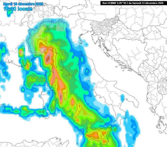A causare questa ondata di maltempo è l’approfondimento di una vasta saccatura atlantica che, nel corso della giornata di domani (lunedì 15 dicembre 2025), si unirà ad un’area depressonaria già presente sull’Africa nord-occidentale, spostando il suo baricentro sulla Penisola Iberica.