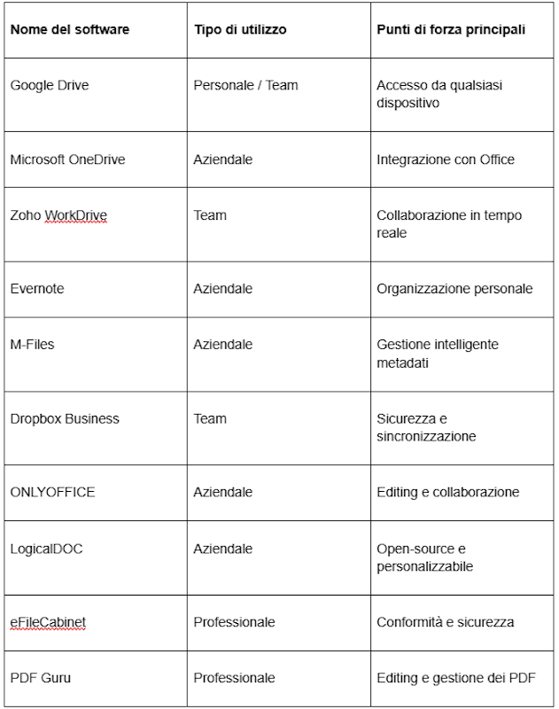 Abbiamo analizzato i migliori software di gestione documenti. Ecco perciò una panoramica comparativa. Può aiutarti nella scelta: