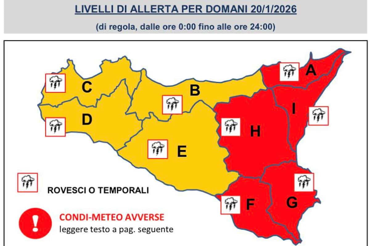 Ragusa – L’emergenza meteo sale di livello e raggiunge la soglia massima. Il Dipartimento della Protezione Civile Regionale ha diramato un nuovo avviso per domani, martedì 20 gennaio, estendendo l’allerta rossa anche alla provincia di Ragusa e a tutto il settore orientale dell’Isola. Il Ciclone Harry si sta rivelando un evento atmosferico di portata eccezionale, con rischi concreti il territorio siciliano soprattutto lungo le coste orientali.