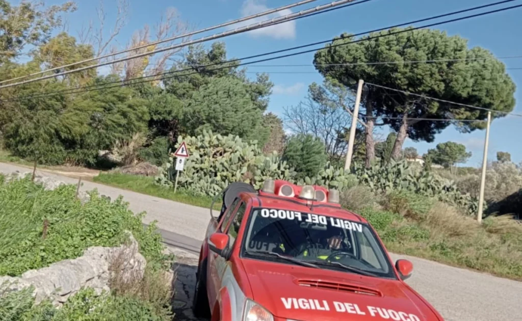 Modica, forte vento spezza pali Telecom - foto vigili del fuoco