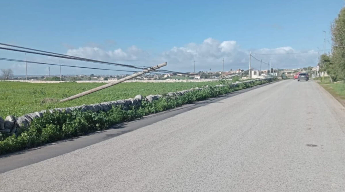 Modica – Possibili disagi alla circolazione stradale in contrada Quartarella a Modica per alcuni pali Telecom spezzati dal forte vento che nelle ultime ore ha interessato tutta la provincia di Ragusa.