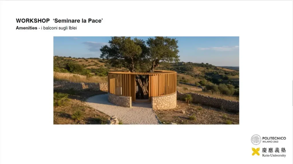 Nel corso del workshop Seminare la Pace sono previste le seguenti attività: Costruzione di un mock-up in scala 1:1 di uno dei moduli del progetto architettonico sviluppato nell’ambito della tesi, al fine di verificarne costruibilità, tempi di realizzazione e qualità spaziali; Costruzione di “amenities” e elementi di arredo urbano a servizio del futuro sistema del Parco della Pace, concepite come elementi di supporto alla fruizione del sito; Laboratori progettuali e costruttivi dedicati allo studio delle tecniche edilizie del territorio ibleo e della tradizione costruttiva nipponica, con particolare attenzione al dialogo e all’incontro tra le due culture; Eventi e momenti di apertura al pubblico, finalizzati al coinvolgimento attivo della comunità locale e alla condivisione del processo progettuale e costruttivo; Convegno conclusivo presso l’Auditorium Carlo Pace, durante il quale verranno presentati i risultati del lavoro svolto dalla collaborazione tra Keio University e Politecnico di Milano e in cui tutti gli attori coinvolti avranno modo di intervenire, confrontarsi ed esprimere le proprie riflessioni sul tema della Pagoda della Pace e sul futuro del sito”.