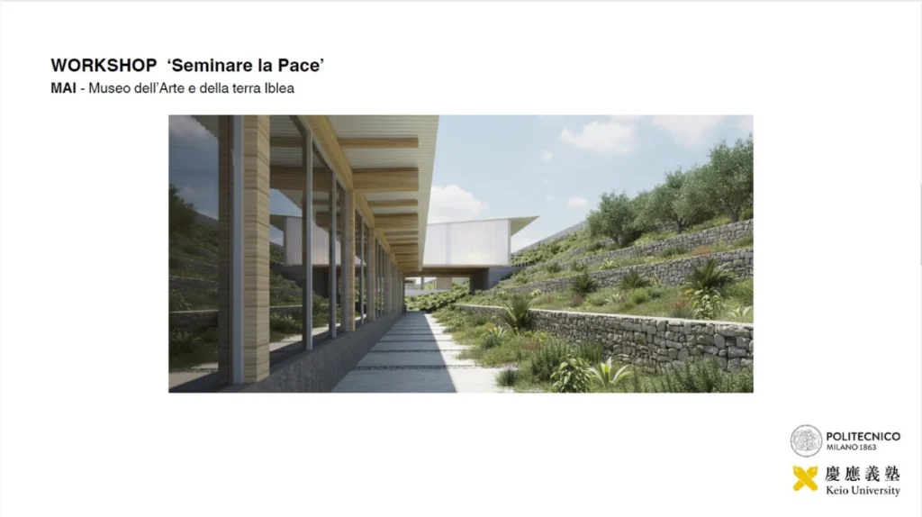 Il workshop – ancora la Schembari – prende avvio dal progetto di tesi di laurea magistrale a ciclo unico in Ingegneria Edile-Architettura “MAI – Museo dell’Arte Iblea. Progettazione di un hub culturale presso la Pagoda della Pace di Comiso con tecnologie off-site”, sviluppato dagli studenti Giacomo Ruello e Nicolò Madera, sotto la guida del Prof. Gabriele Masera (Politecnico di Milano) e Hiroto Kobayashi (Keio University)”. “L’obiettivo – spiega infatti Giacomo Ruello –  è dimostrare in maniera pratica come il concept architettonico e la visione progettuale possano dialogare con il contesto eterogeneo e simbolico della Pagoda della Pace, utilizzando l’architettura come strumento di protezione, valorizzazione e attivazione culturale del luogo.