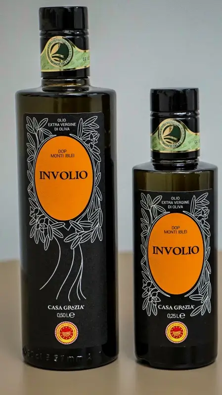 Delicato, dal gusto contemporaneo, aggiunge maggiore freschezza alle insalate estive, al pesce affumicato , alle carni bianche e al pesce, in un mix di salute, gusto e creatività. Gli oli evo bio “INVOLIO” di Casa Grazia che, nomen omen, esprime il desiderio di restare in Sicilia, sono il risultato di una raccolta manuale delle olive che, una volta selezionate, seguono l’estrazione a ciclo continuo, filtrazione e conservazione in silos di acciaio inox in assenza di ossigeno. In circa 100 ettari di uliveto, Emilio Brunetti coltiva ulivi dalle singolari caratteristiche che connotano una moltitudine di cultivar oltre che di cloni che arrivano nell’Isola già con le colonie greche del sesto secolo a.C. Gli oli della famiglia Brunetti sono l’espressione di storia, di famiglia e di cultura mediterranea.