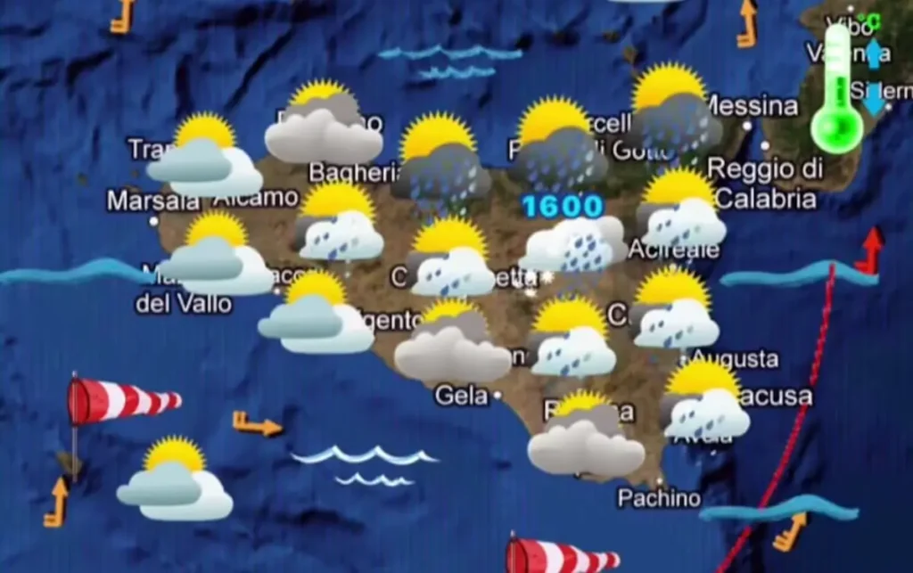 • Pomeriggio: Il nucleo dell’instabilità si sposterà verso l’interno e i versanti orientali. Sono attese precipitazioni sparse che colpiranno in particolare le zone joniche, le aree centrali e il settore settentrionale orientale (Messinese). Sul resto dell’Isola prevarrà un’alternanza di nubi e schiarite senza fenomeni di rilievo.