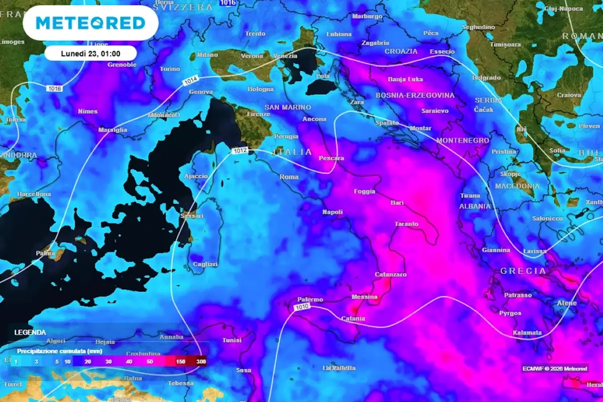 Per l’area del Mediterraneo, e quindi per l’Italia, significa un aumento netto della probabilità di perturbazioni, con piogge insistenti, venti forti e temperature che tenderanno a essere più vicine alla media o leggermente sotto, soprattutto al Centro-Sud.