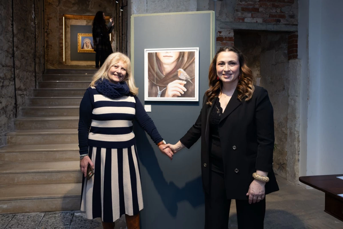 Figure come Sant’Agata, San Francesco e Santa Rosalia perdono la loro distanza divina. Diventano invece presenze vicine, attraversate da scelte e responsabilità. Mariateresa Zagone, critica d’arte presente all’evento, ha sottolineato come il sacro affiori direttamente dall’esperienza umana. Non c’è un’imposizione dall’alto, ma uno spazio di relazione consapevole. L’icona ritrova così una funzione attuale, capace di interrogare lo spettatore moderno.