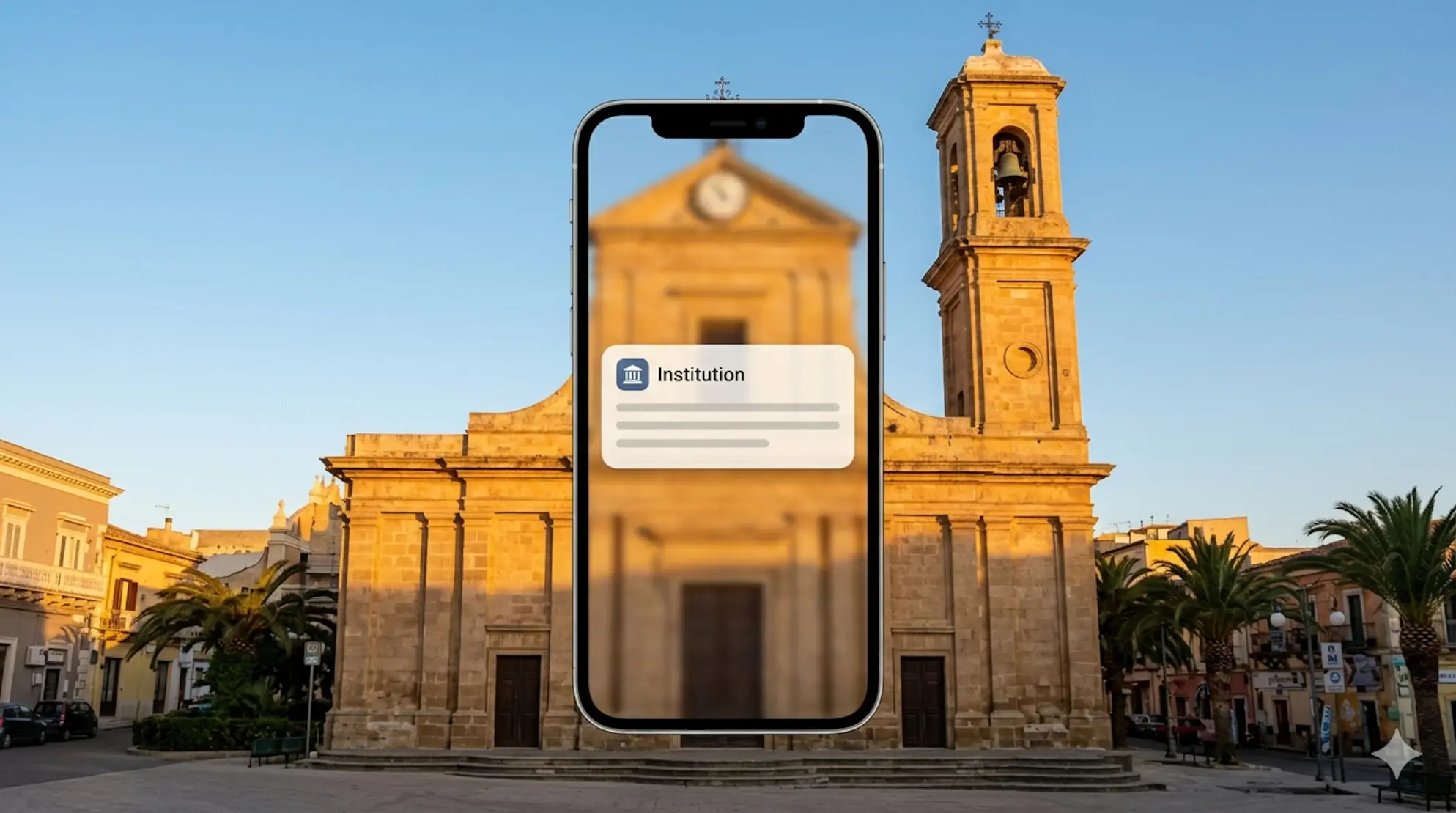 Veduta del centro storico di Santa Croce Camerina con accenno alla comunicazione digitale urbana.