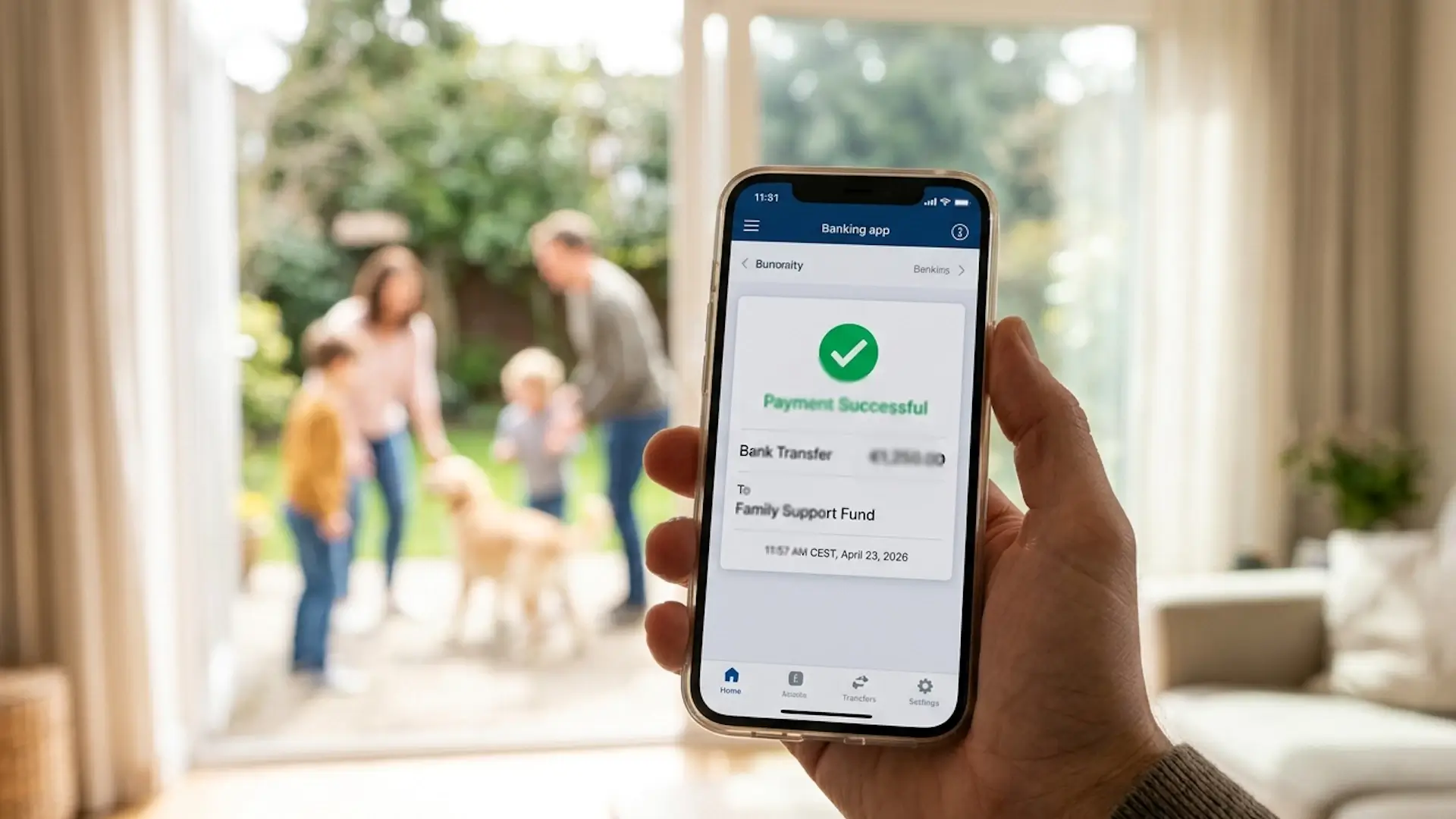 Schermata di un'app bancaria che mostra l'accredito dell'Assegno unico ad aprile 2026